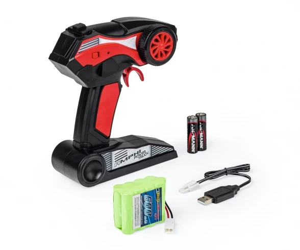 Fully assembled model, 2.4 GHz RC system, NiMH powerpack 9,6 V / 600 mAh, charger, transmitter batteries and manual.