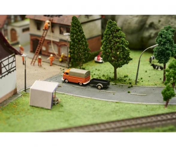 The 1:87 scale flatbed trailer is compatible with all T1 buses of the